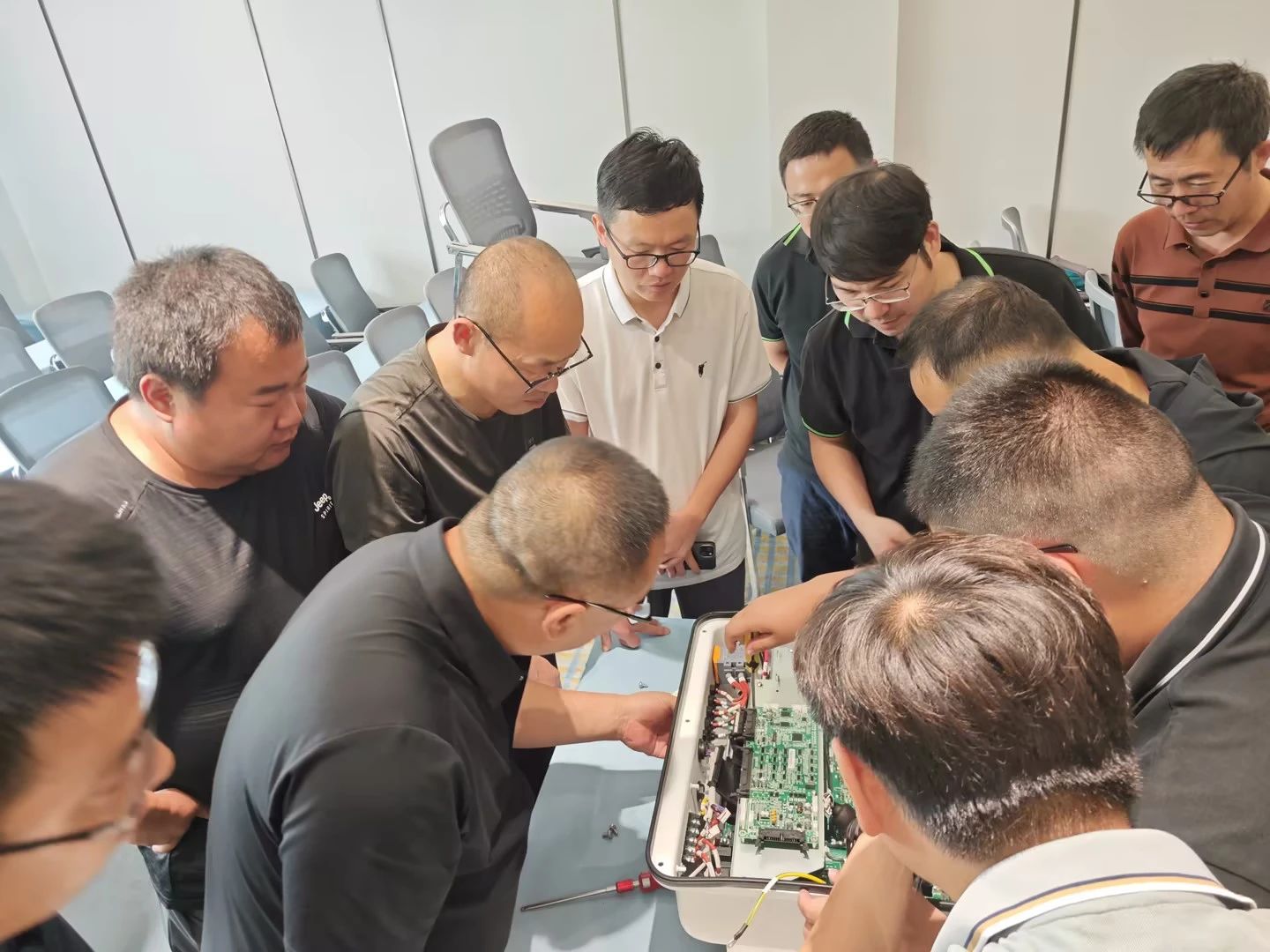 本次3天培訓采取課堂理論授課、現(xiàn)場解答、交流研討、隨堂測試、師生互動實操等方式。課程設(shè)置注重專業(yè)性,以“重案例、重實用”為原則,聚焦于光儲行業(yè)應(yīng)用,針對光儲運維服務(wù)的特點,分析光儲系統(tǒng)常見、易發(fā)故障及處理方式,并為學員安排了多場技術(shù)實操訓練,重點鍛煉學員們面對實際問題時的分析判斷、應(yīng)對策略和動手能力,讓參與培訓的學員能夠充分學以致用。